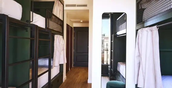 We stay in a modern, centrally located hostel. It’s tidy, safe and comfortable, with rooms of 4 or 6 beds (all same-sex) and privacy curtains on every bunk.